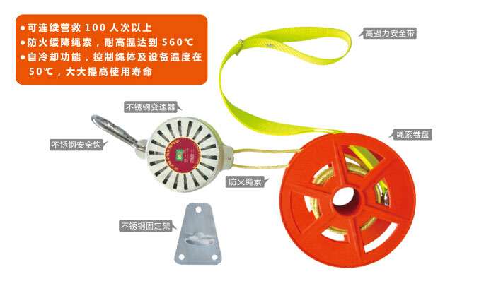青島億和海麗安防科技有限公司與清華大學(xué)聯(lián)合研發(fā)的“安心牌”高層樓宇緩降器,采用自冷卻技術(shù),使產(chǎn)品更加安全可靠,是高層住宅必備的逃生產(chǎn)品。該產(chǎn)品可連續(xù)營救100人次以上,防火緩降繩索耐高溫可達(dá)到560℃,自冷卻功能控制繩體及設(shè)備溫度在50℃左右,適用于200米以下高層逃生,獲山東省名牌產(chǎn)品、山東省安全生產(chǎn)科學(xué)技術(shù)進(jìn)步二等獎,入選國家安全生產(chǎn)“千項”產(chǎn)品推廣目錄,填補(bǔ)了國內(nèi)空白,達(dá)到國際先進(jìn)水平。