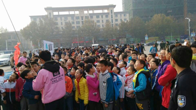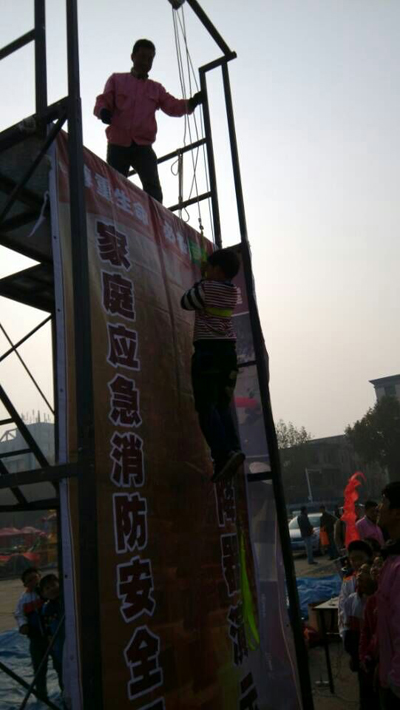 學(xué)生等待體驗(yàn)高層樓宇緩降器