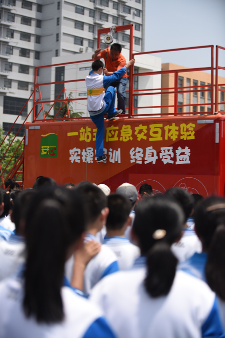 企業(yè)把載有安全體驗設(shè)備的大篷車開到市郊學(xué)校,為學(xué)生進行應(yīng)急知識培訓(xùn)提供方便,推進培訓(xùn)活動的多樣化、廣覆蓋。