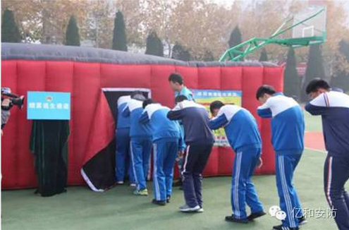 在演練現(xiàn)場,有一個類似于充氣墊的裝備,其一側(cè)有兩個門。“這是煙霧逃生通道,模擬著火現(xiàn)場,讓學(xué)生體驗。”青島市應(yīng)急安全教育培訓(xùn)中心講師介紹。隨后,培訓(xùn)講師打開門,說明注意事項后,學(xué)生排隊進(jìn)入。“參加演練的學(xué)生進(jìn)入煙道逃生體驗系統(tǒng)后,要判定險情并自行選擇通行路徑和保持正確的姿勢,所有人應(yīng)在規(guī)定的時間內(nèi)走完全程。”負(fù)責(zé)演練的講師說。