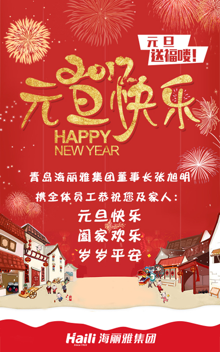 元旦送福!青島海麗雅集團(tuán)董事長張旭明攜全體員工恭祝您及家人:元旦快樂,闔家歡樂!