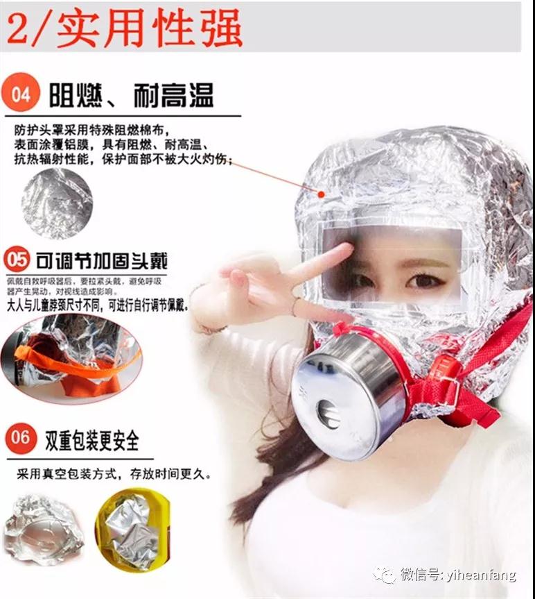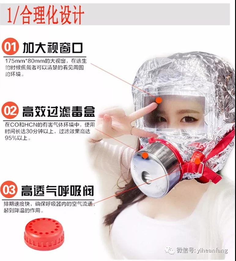 發(fā)生火災(zāi)時(shí),佩戴“海麗安心”過(guò)濾式消防自救呼吸器,可通過(guò)過(guò)濾裝置吸附、吸收、催化及直接過(guò)濾去除一氧化碳、煙霧等有害氣體,保證人員的生命安全。