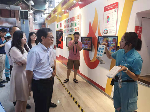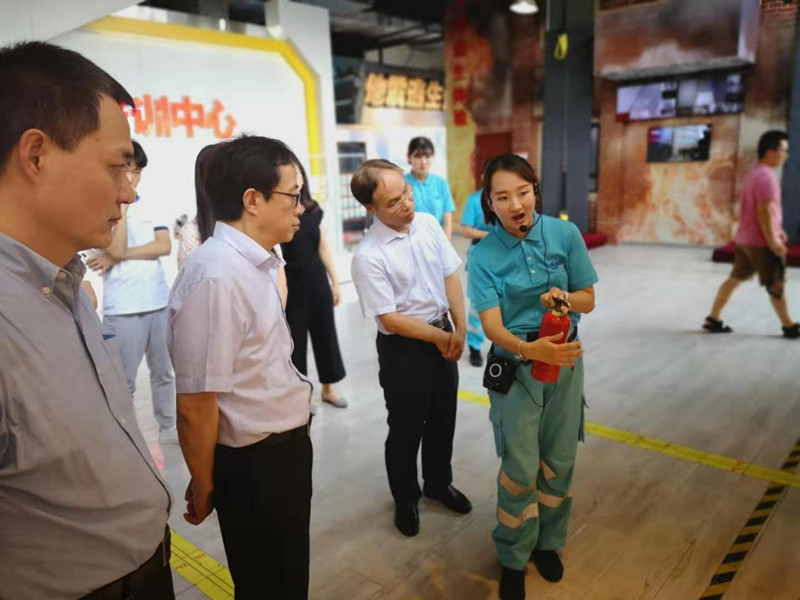 汪明副主任一行實(shí)地考察了“火災(zāi)高層緩降逃生”,“3-6級(jí)地震”,“家庭安全隱患排查區(qū)”,“災(zāi)難街”,“119模擬報(bào)警設(shè)備”等特色應(yīng)急體驗(yàn)項(xiàng)目,切身體驗(yàn)了火災(zāi)
