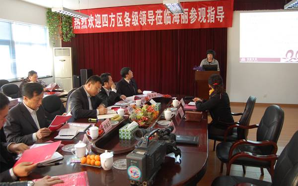 2010年12月28日四方區(qū)李奉利區(qū)長等各位領導蒞臨億和海麗參觀指導,董事長張旭明、書記崔俊芬和企劃部部長鄭文嬌進行了接待工作。在張旭明董事長的帶領下,李奉利等領導參觀了公司新產(chǎn)品樣品間,對公司新產(chǎn)品的研發(fā)給予了肯定。