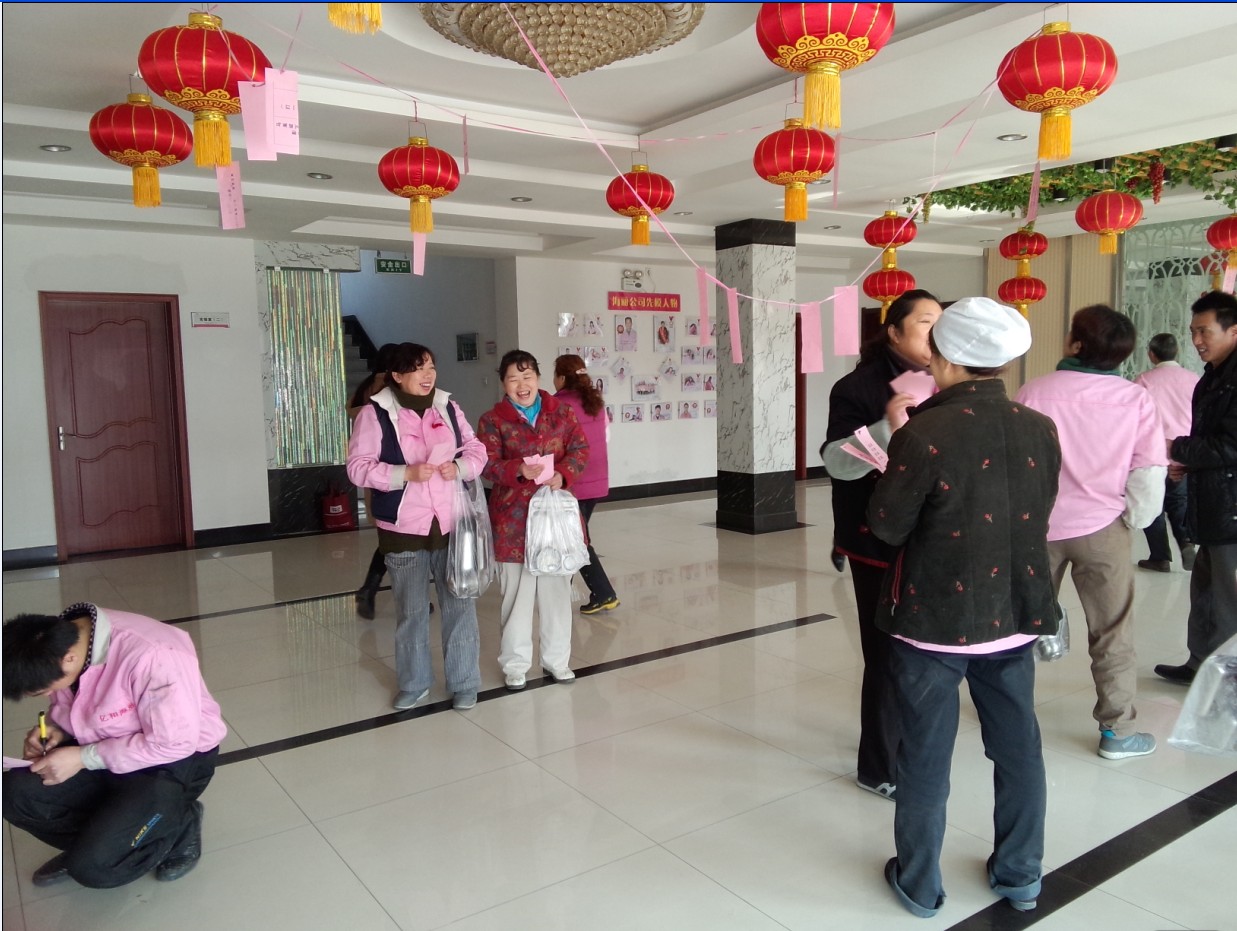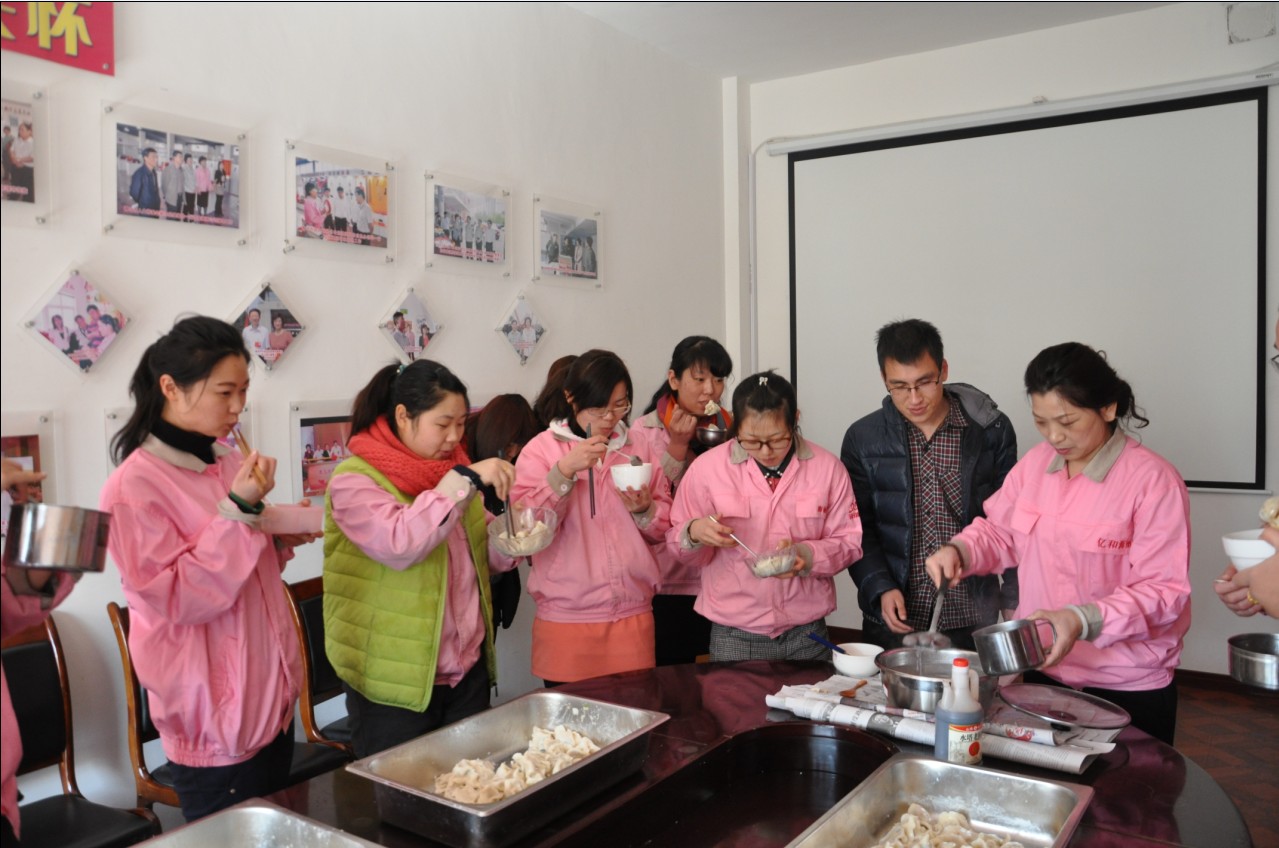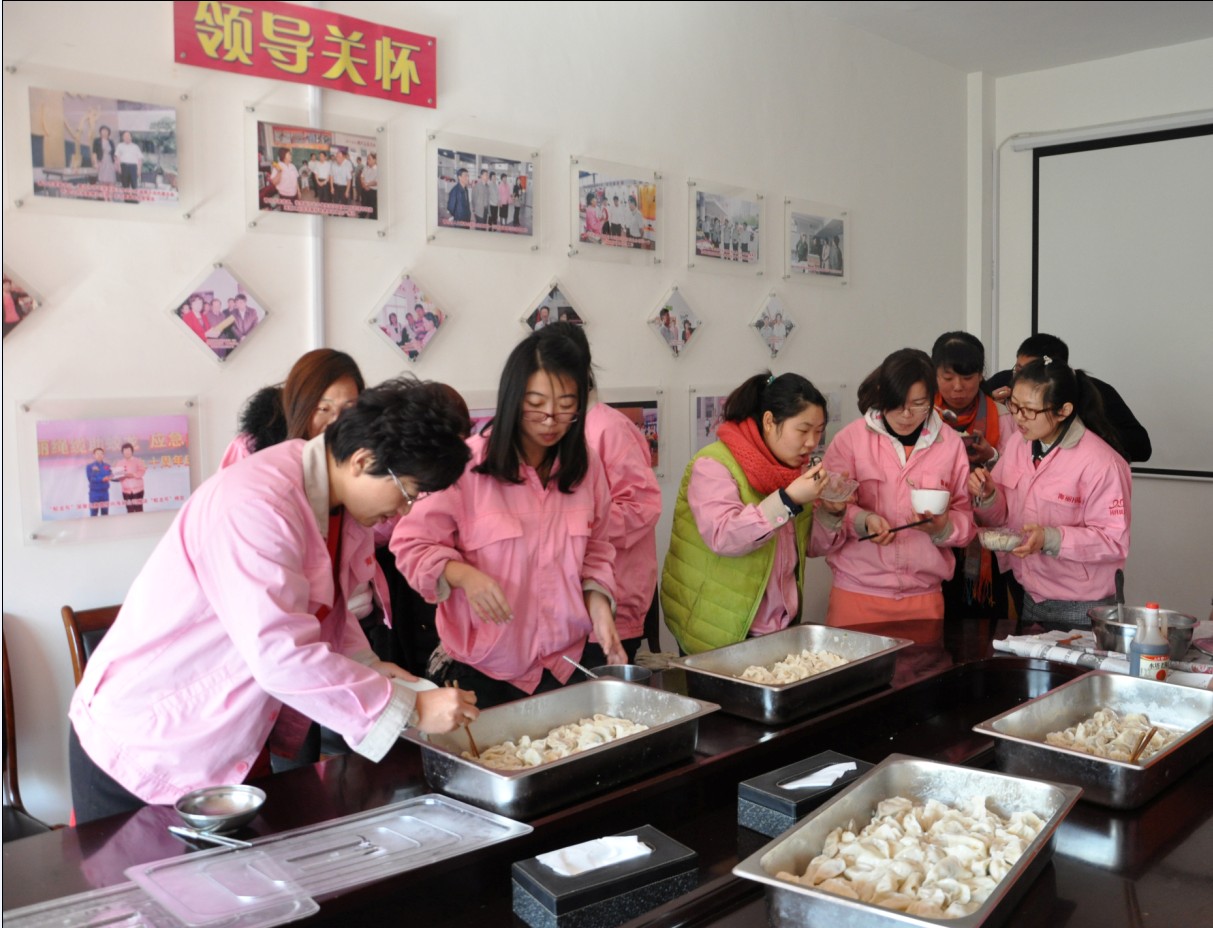 鬧元宵:“每逢佳節(jié)倍思親”, 節(jié)日當(dāng)天,因公司非本市員工不能與家人團(tuán)聚共渡佳節(jié),在董事長提議下,黨支部副書記、工委主席崔俊芬女士帶領(lǐng)大家一起,專門為外來務(wù)工人員和在公司住宿的大學(xué)生煮元宵、包水餃,并同大家一起過節(jié)。領(lǐng)導(dǎo)的體貼和關(guān)懷,讓大家切身感受到“海麗大家庭”的溫暖。