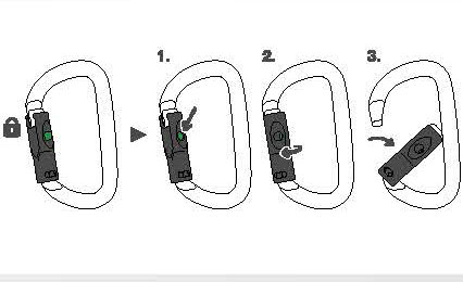 由鋁合金制成,它的橢圓外形可使較寬的裝備如滑輪、上升器和移動(dòng)止墜器位于比較好的位置。流暢的內(nèi)部設(shè)計(jì)讓使用更為簡(jiǎn)便。它有多種上鎖系統(tǒng):自動(dòng)鎖門或手動(dòng)鎖門。可與固定桿配合使用,能使安全鉤在主軸受力,減少翻轉(zhuǎn)的風(fēng)險(xiǎn),并保持與裝備的連接。