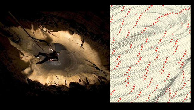探洞繩的中點用醒目的顏色標注出來。此種標記不會影響繩芯的結構和繩子的物理性能。