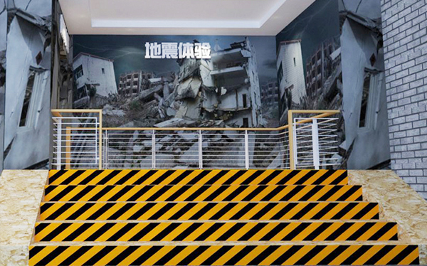 由模擬地震平臺和模擬地震系統(tǒng)組成,可模擬地震發(fā)生時的各種震級和震波,實景式的視覺、聽覺、觸覺使體驗使體驗者得到全方面的感受。