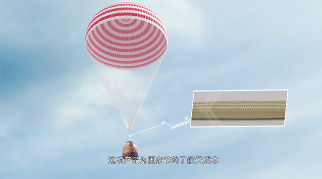 為航天科技集團(tuán)508所研制的纖維垂掛吊索,用于連接返回艙和降落傘,咱們國家研制大型載人宇宙飛船,相應(yīng)的返回艙也增大很多,為了搭載6-10名宇航員和往返運輸貨物,要想辦法在其他部位減重,為此,我們專門研發(fā)了此款載人飛船返回艙垂掛吊索產(chǎn)品,重量僅4.5kg,替代了以前100多公斤的鋼纜,為國家節(jié)省的上億資金。